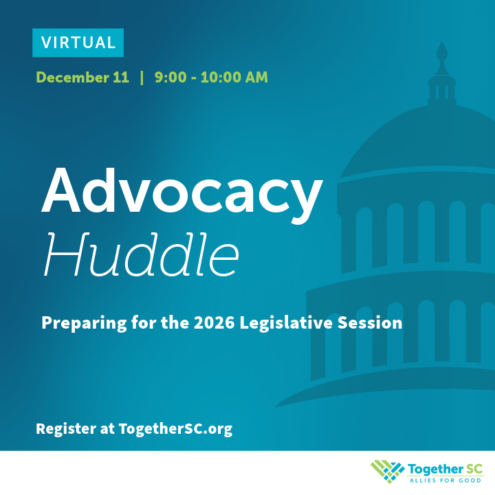 Open to Peer Network members only, Advocacy Huddles offer unstructured time for advocacy professionals to share updates on the topics most pressing to the sector in South Carolina. December's Huddle will focus on preparing for the 2026 legislative session. These sessions are not recorded.