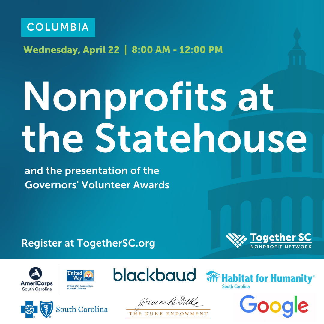 Meet your legislator and join nonprofit professionals from across South Carolina at the State House for a Legislative Breakfast.